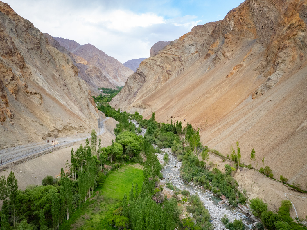 Das Dorf Domkhar (Indien) liegt an der malerischen Route durch das Sham Valley, etwa 2 Stunden Fahrt von Leh über den Leh–Kargil Highway. Die Strecke führt durch fruchtbare Täler, Siedlungen am Flussufer und aprikosenreiche Obstgärten – eine Fahrt, die ebenso bereichernd ist wie das Ziel selbst. Taxis können in Leh organisiert werden; das Dorf ist gut erreichbar, bleibt jedoch fern vom Trubel der Stadt.