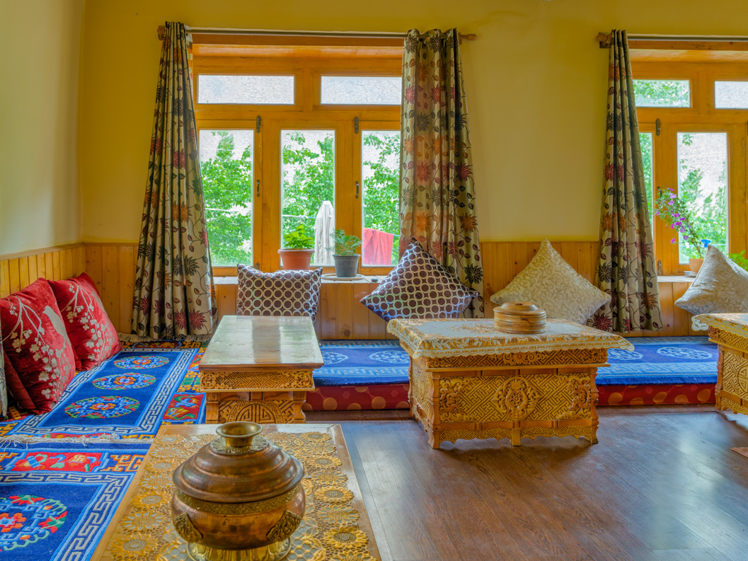 Ihre Gastgeber, Tsewang Dolma und ihr Ehemann, verkörpern die Herzlichkeit des ladakhischen Lebens. Dolma ist eine sanfte Seele, die Landwirtschaft, Kochen und die Betreuung ihrer Enkelkinder meistert, während ihr Mann viele Stunden in seiner traditionellen Kunstwerkstatt verbringt. Gemeinsam bringen sie sowohl Kunst als auch Landwirtschaft in den Alltag des Homestays ein. Gäste teilen nicht nur ihre köstlichen Mahlzeiten, sondern auch Geschichten, Lachen und Traditionen – und reisen mit einem Gefühl von Verbundenheit ab, das weit über eine gewöhnliche Reise hinausgeht.