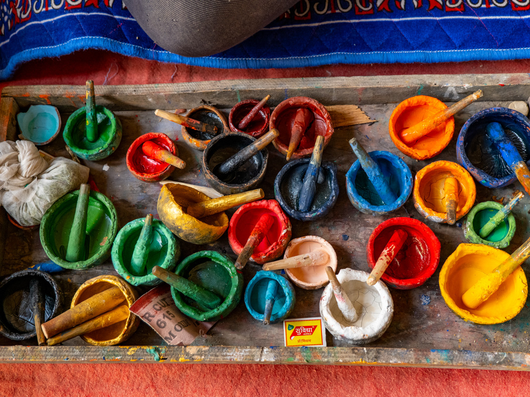Das Homestay ist zugleich ein kultureller Zufluchtsort und bietet seltene Gelegenheiten, Thangka-Malerei von Tsewang Dolmas Ehemann zu erlernen, einem erfahrenen Künstler, der dieses alte Handwerk bewahrt. Auch die Mahlzeiten sind ein Highlight: Neben ladakhischen Klassikern wie Khambir und Chutagi gibt es fast vergessene Rezepte wie Tapu, ein nahrhaftes Gericht aus Weizenmehl, Aprikosenkernen und Gewürzen. Snacks aus Gerste, Erbsen, Walnüssen, Trockenfrüchten und frisch gepflückten Aprikosen stehen jederzeit bereit – ein echter Vorgeschmack auf ladakhische Gastfreundschaft.