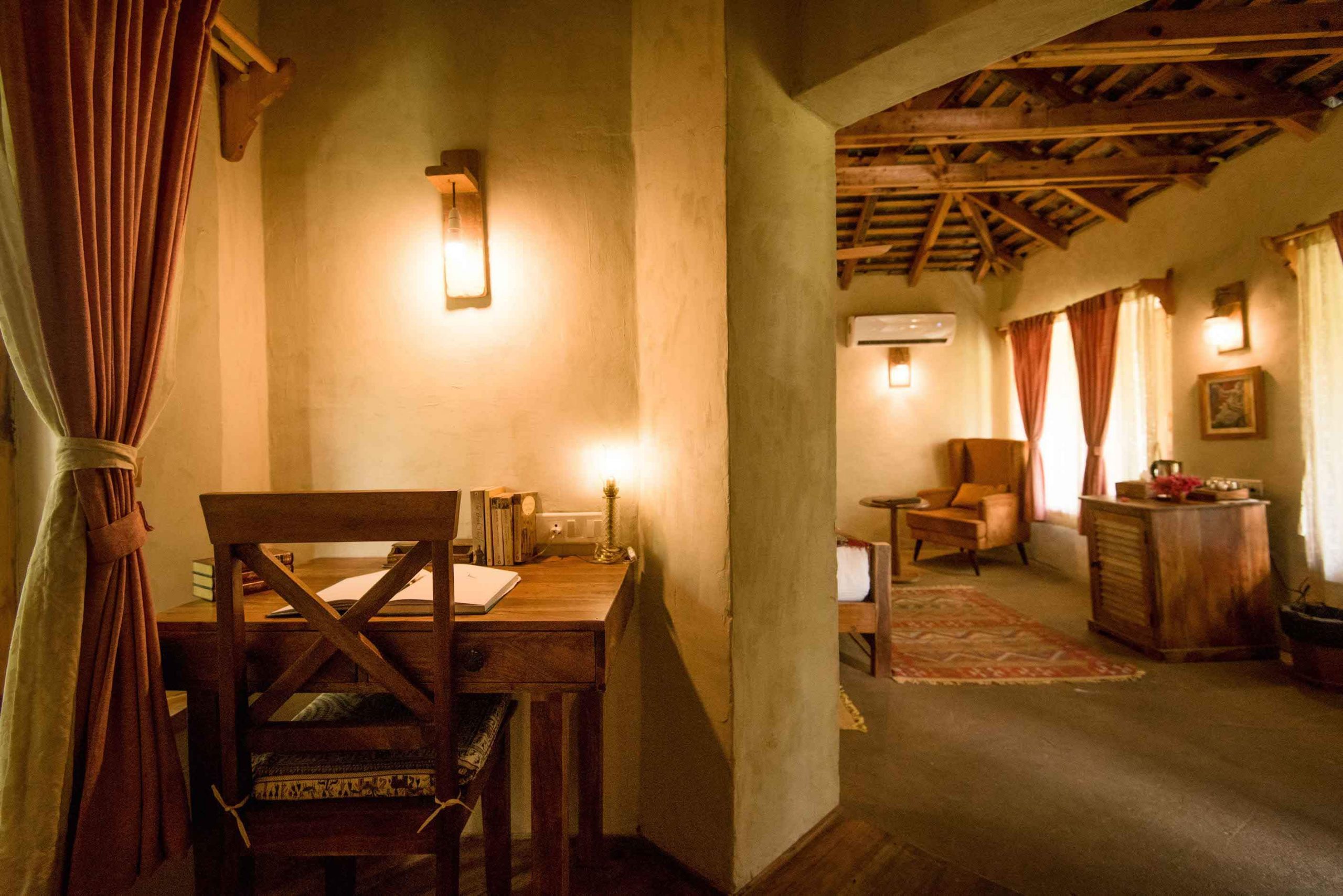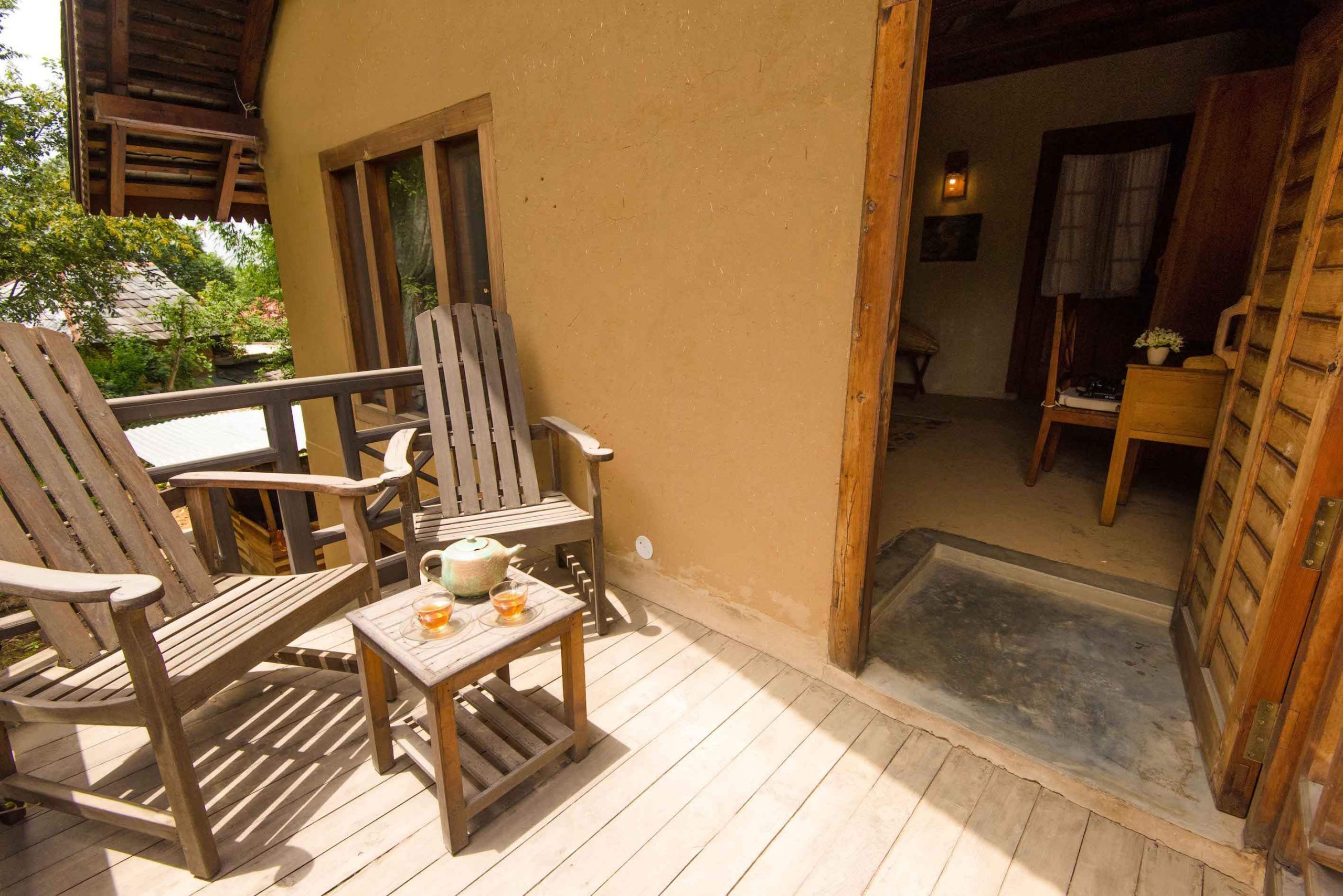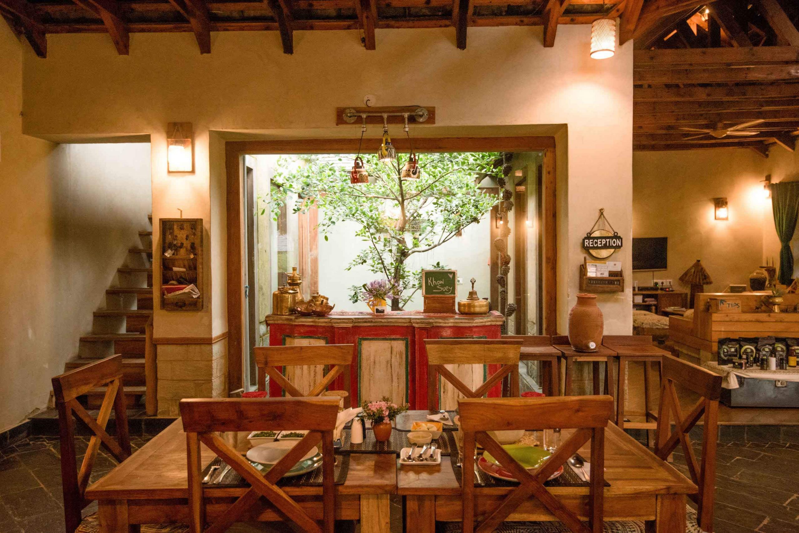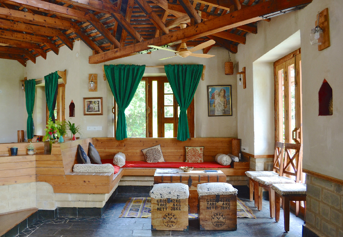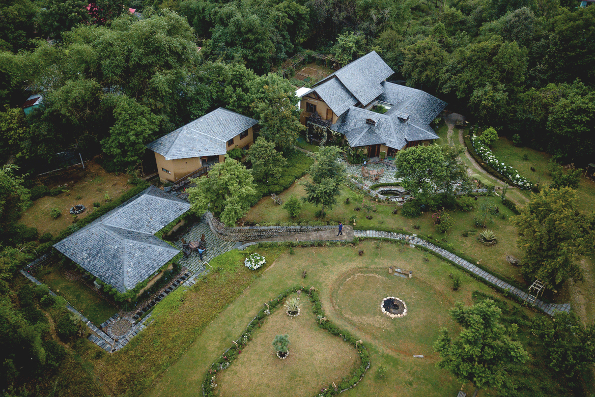 Wir sind eine umweltfreundliche Unterkunft, die komplett aus natürlichen Materialien im traditionellen Kangra-Stil gebaut wurde. Die Gebäude bestehen aus Lehmwänden auf einem Sockel aus Flusssteinen. Türen und Fenster stammen ursprünglich aus dem alten Gerichtsgebäude von Palampur, bevor es abgerissen wurde. Das Dach ist vollständig aus Schiefer, und es wurde viel Holz verbaut, das allen Räumen einen angenehm natürlichen Duft verleiht.