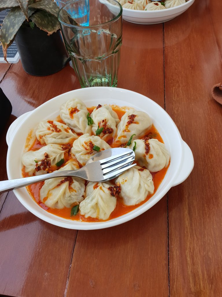 - Momos: Nepals Comfort Food. Kleine Teigtaschen, gedämpft oder gebraten, oft mit würziger Sauce. Achtung: Sehr scharf!