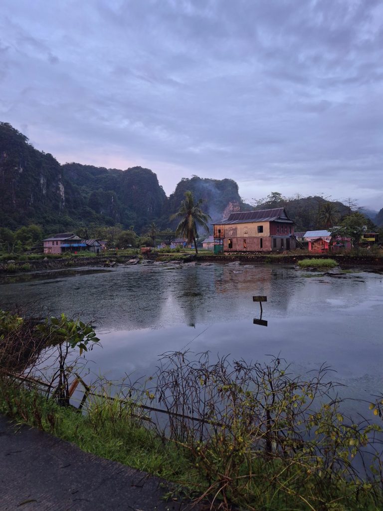 Wenn man von „Karst Village“ spricht, ist damit meist ein Dorf gemeint, das direkt in dieser Kalksteinlandschaft liegt – also eingebettet zwischen Felsen, Reisfeldern und Flussarmen. Eines der bekanntesten Dörfer in der Gegend ist Kampung Berua, das du typischerweise per Boot erreichst. Die Menschen leben hier überwiegend von Landwirtschaft (vor allem Reis) und teilweise von Aktivitäten rund um den Fluss; Besucher bekommen einen sehr nahen Einblick in den Alltag, ohne dass es sich nach einer künstlichen „Touristenkulisse“ anfühlt.