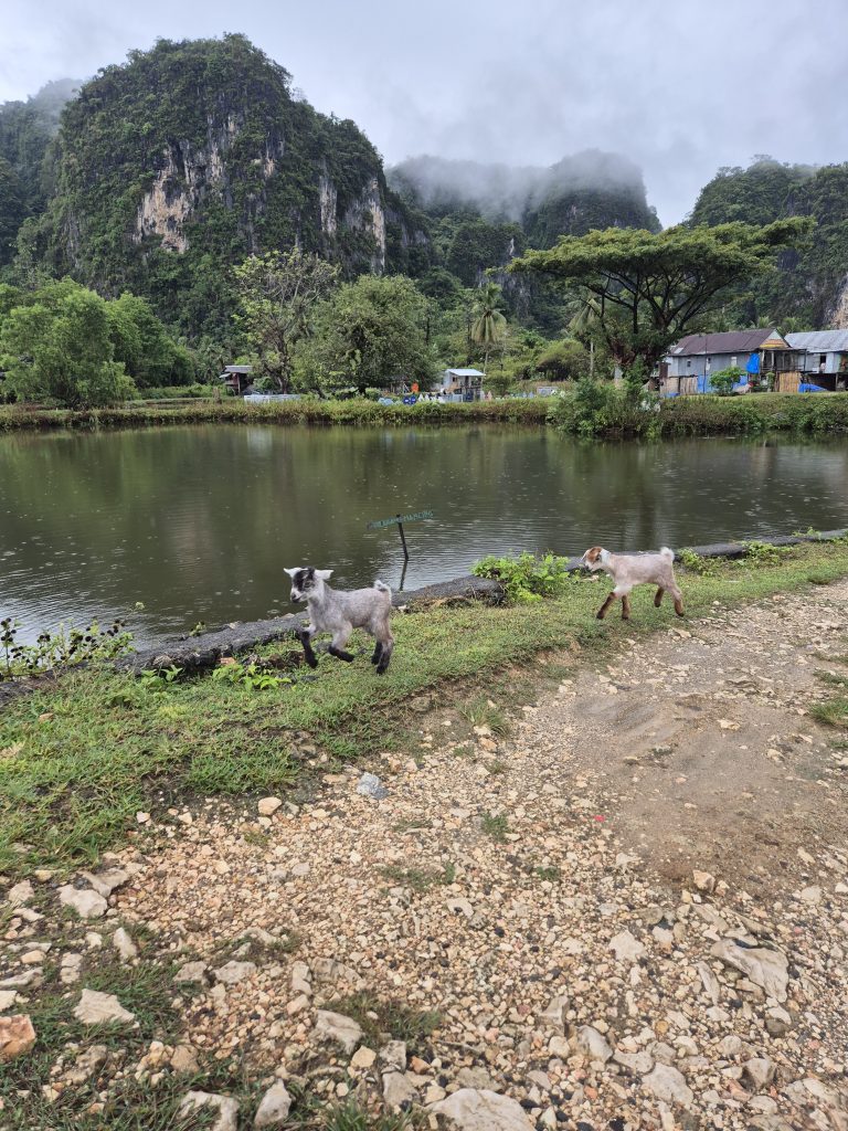 Am zweiten Tag kamen drei Franzosen an, und wir haben zusammen mit Nasrul eine Tagestour gemacht. Wir sind noch tiefer in eine andere Seite von Rammang Rammang gewandert. Unterwegs waren überall Ziegen, bunte Stelzenhäuser, kleine Szenen aus dem Dorfleben. Alles fühlte sich so authentisch an – nicht „für Touristen“, sondern einfach so, wie es ist.