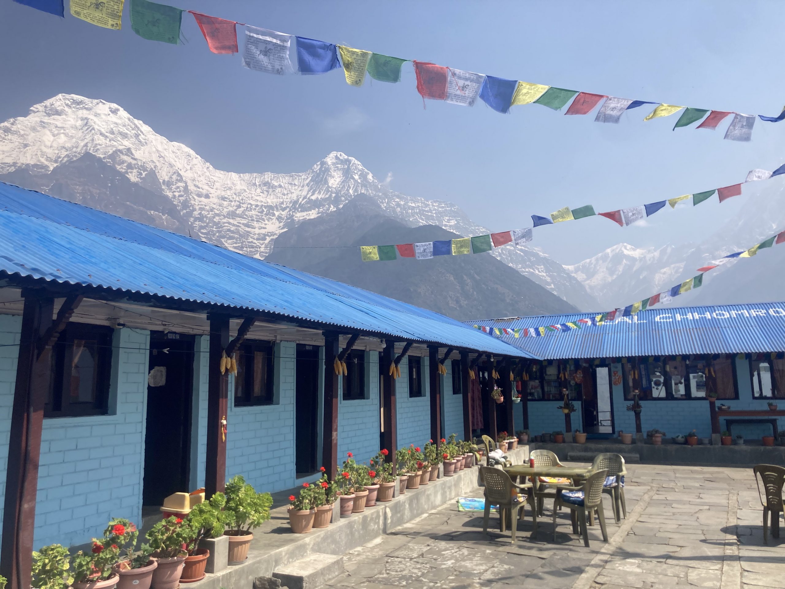Gestärkt vom Frühstück wanderst du mit freier Sicht auf die Gipfel des Hiunchuli und der Annapurna Süd zunächst hinab zum Flussufer des rauschenden Modi Khola nach New Bridge (ca. 1.350 m). Hier überquerst du die erste große Hängebrücke des Tages, das Highlight folgt dann später ;). Am Nachmittag erwartet dich ein steiler Anstieg hinauf nach Chhomrong (ca. 2.170 m). Das Dorf, in dem du heute übernachtest, überzeugt mit seinem Charme und einer fantastischen Aussicht – hier bist du der Annapurna Süd zum Greifen nah.