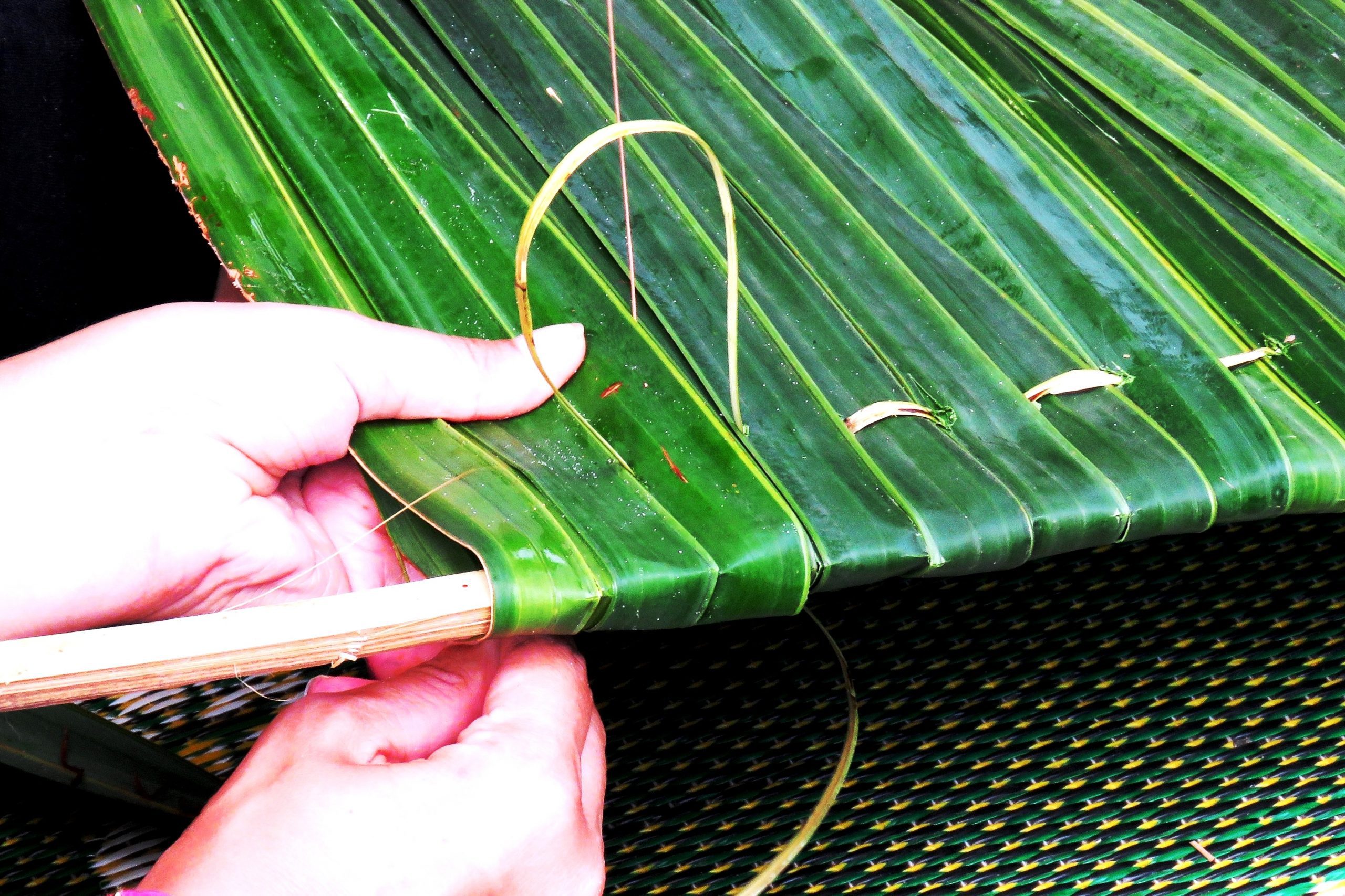 09:00 Teilnahme an einer Erwerbsaktivität: Palmblätter des Nypa-Palms flechten und Dächer aus Mangrovenpflanzen herstellen