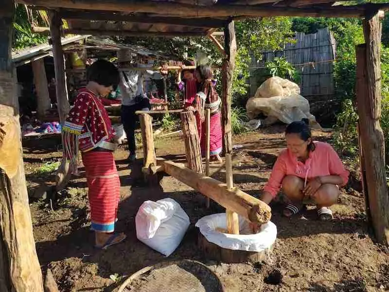 Du wanderst durch stille Wälder, Bambushaine und Farmland, während dein Guide Geschichten über die Dara-ang erzählt, die in den 1980er Jahren aus Myanmar hierher migrierten. Im Dorf Mae Chon lernst du alte Webtraditionen kennen, versuchst dich beim Reismahlen und bereitest zusammen mit der Familie von Lung Bun ein rustikales Mittagessen über dem Holzfeuer zu.