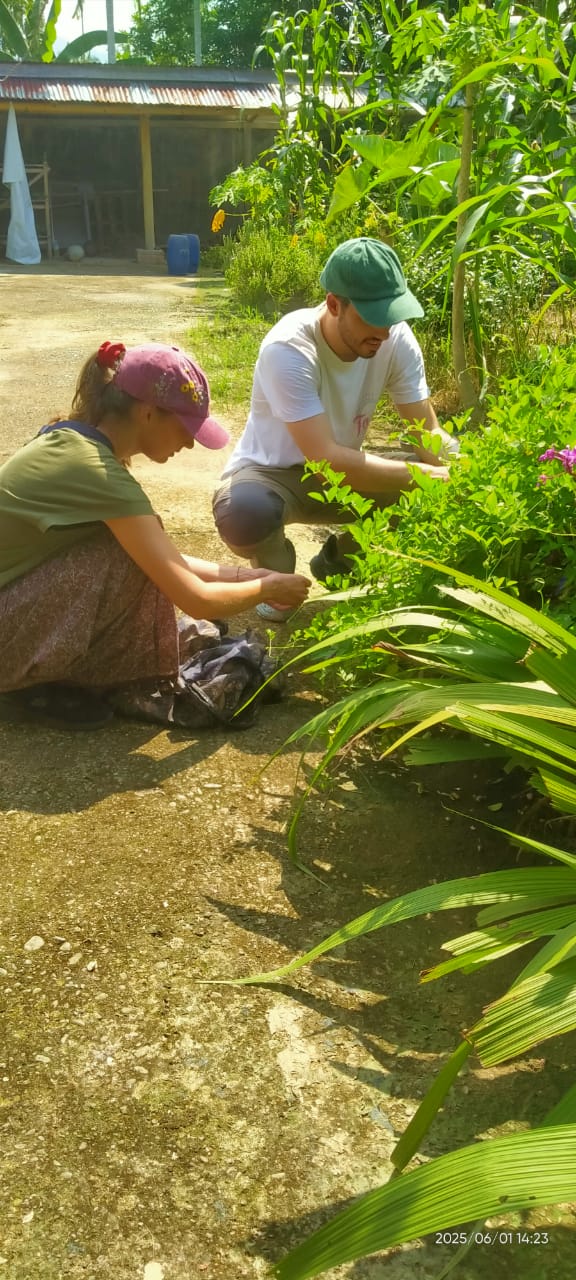 Essen ist ein Grundbedürfnis und Teil unserer Kultur. Begleite uns in unseren Bemühungen, Menschen beizubringen, woher ihre Lebensmittel stammen. In der Nähe von Bukit Lawang befinden sich zwei Öko-Farmen. Eine gehört einer inspirierenden Frau aus der Region – Erna. Erna’s Eco-Farm umfasst auch einen Gemeinschaftsgarten. Sie konzentriert sich auf den Anbau von Bio-Obstbäumen und Bio-Gemüse. Im Gemeinschaftsgarten liegt der Fokus auf Kompostierung.