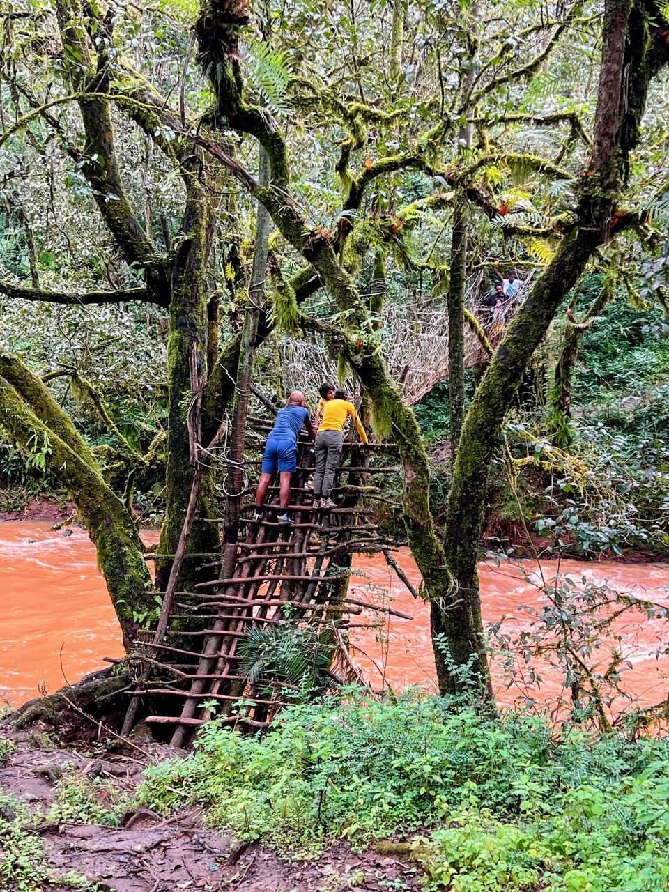Nach dem Frühstück kannst du noch etwas den Wald erkunden, bevor du eine einfache 2-stündige Wanderung in die Kleinstadt Hawaryat machst. Dort gibt es lokales Mittagessen und Kaffee – und wenn es passt, kannst du den kleinen Markt in Hawaryat besuchen. Nach dem Mittagessen geht es bergab aus dem Ort, du überquerst eine Bailey-Brücke und steigst auf der anderen Seite steil hinauf. Du kommst am berühmten Kloster Mihur Eyesus vorbei und gehst weiter zur Yegesh Amanuael Church. Von dort führt der Trail durch schönen Wald hinunter zum Wabe River. Du überquerst den Fluss über eine Hängebrücke aus Metallkabeln und steigst auf der anderen Seite wieder hoch, bis du in Mekorkor Village ankommst. Wunderschöne Landschaft mit tollen Ausblicken in die bewaldete Schlucht. Optional: Aufstieg bei der Giyorgis Church Richtung Atat für besonders schöne Blicke in die Schlucht.