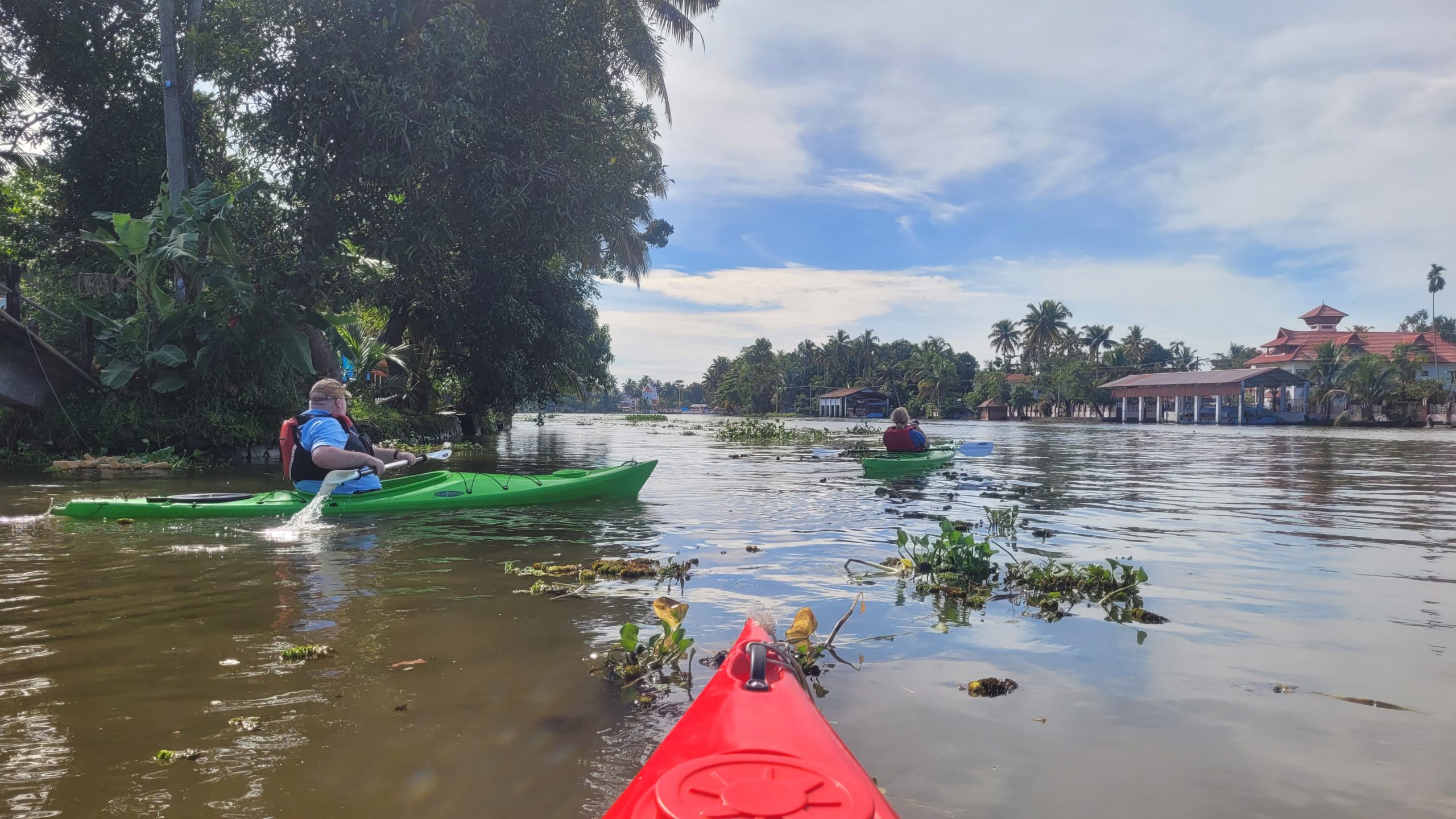 Paddeln durch die engen Kanäle der Backwater-Dörfer