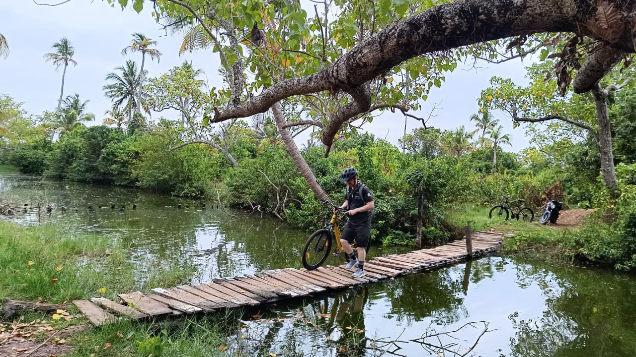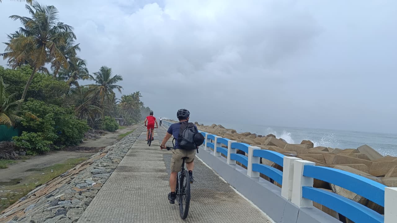 Dies ist einer der landschaftlich reizvollsten Radtage. Du verlässt Munroe Island und radelst über Äste des Ashtamudi-Sees weiter in Richtung Paravur-See. Die Route ist reich an Mangroven, Reisfeldern, Kanälen und kleinen landwirtschaftlichen Dörfern. Wenn du die Küste erreichst, überquerst du malerische Landstreifen, wo Seen auf das Meer treffen. Du kommst auch an Stränden wie Kappil und Odayam vorbei, mit Fischerdörfern entlang der Küste. Der Tag endet am Varkala Beach, umgeben von Klippen und gesäumt von Kokospalmen – ideal, um zu entspannen und einen weiteren wunderschönen Sonnenuntergang zu erleben.