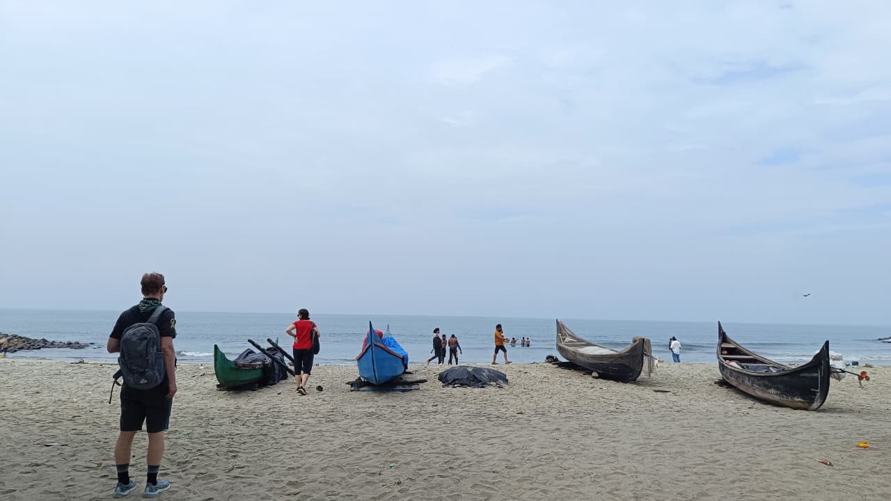 Unser nächster Halt ist der Varkala Beach, berühmt für seine atemberaubenden Klippen und die friedliche Landschaft. Genieße die spektakuläre Aussicht und die entspannte Umgebung, während du entlang der Küstenstraßen zu diesem malerischen Ort radelst.