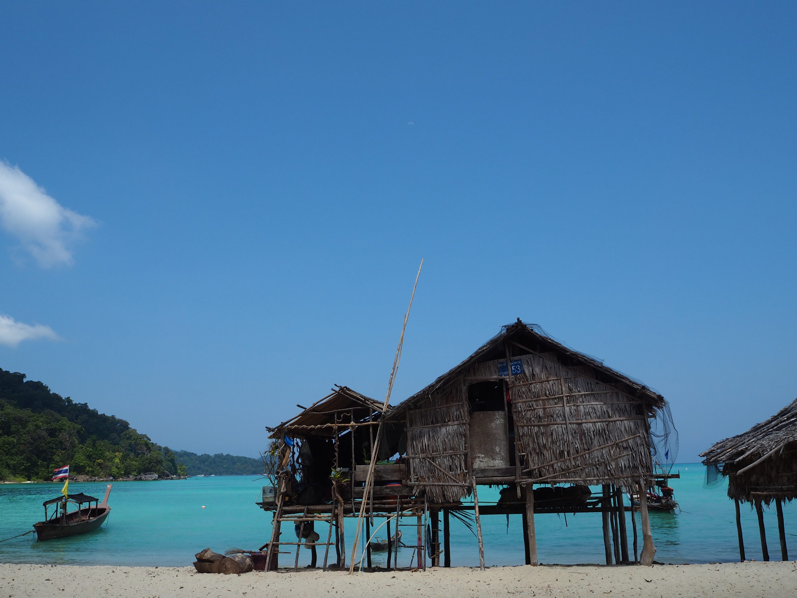 10:30 Treffen mit dem lokalen Guide und Longtail-Bootsfahrt ins Moken-Dorf. Dorfführung mit Einblick in die Beziehung der Moken zu ihrer Umwelt. Besuch der „Spirit Poles“ und Stelzenhäuser direkt am Strand.