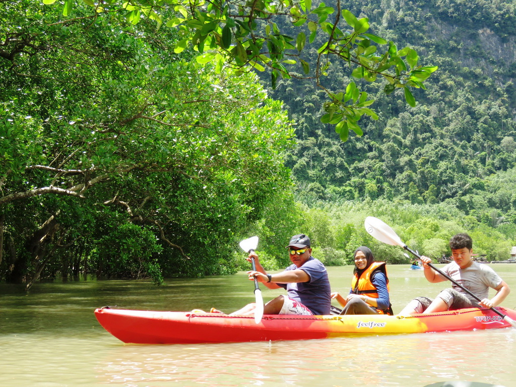 09:00 Beginn der Tour in Krabi, Abholung am Hotel, Transfer ins Dorf Laem Sak, Check-in ins Bungalow
