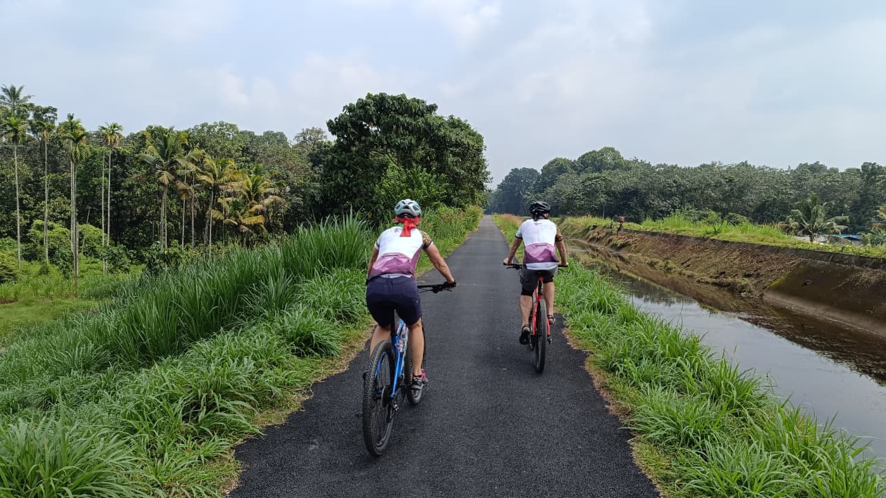 Radeln entlang der Bewässerungskanäle und Dörfer von Thattekad