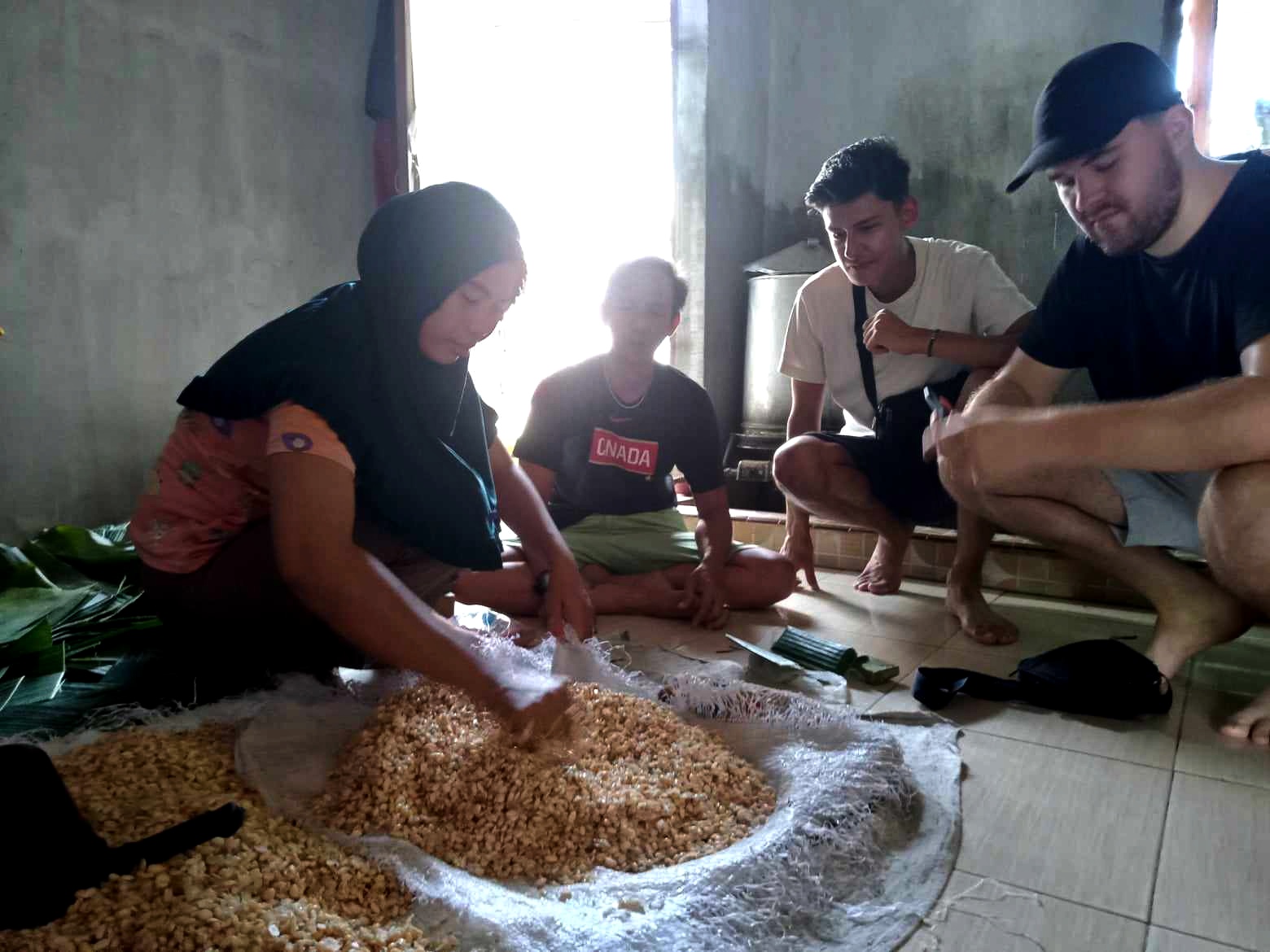Erfahren, wie Tempeh hergestellt wird – und selbst beim Einwickeln in Bananenblätter mitmachen