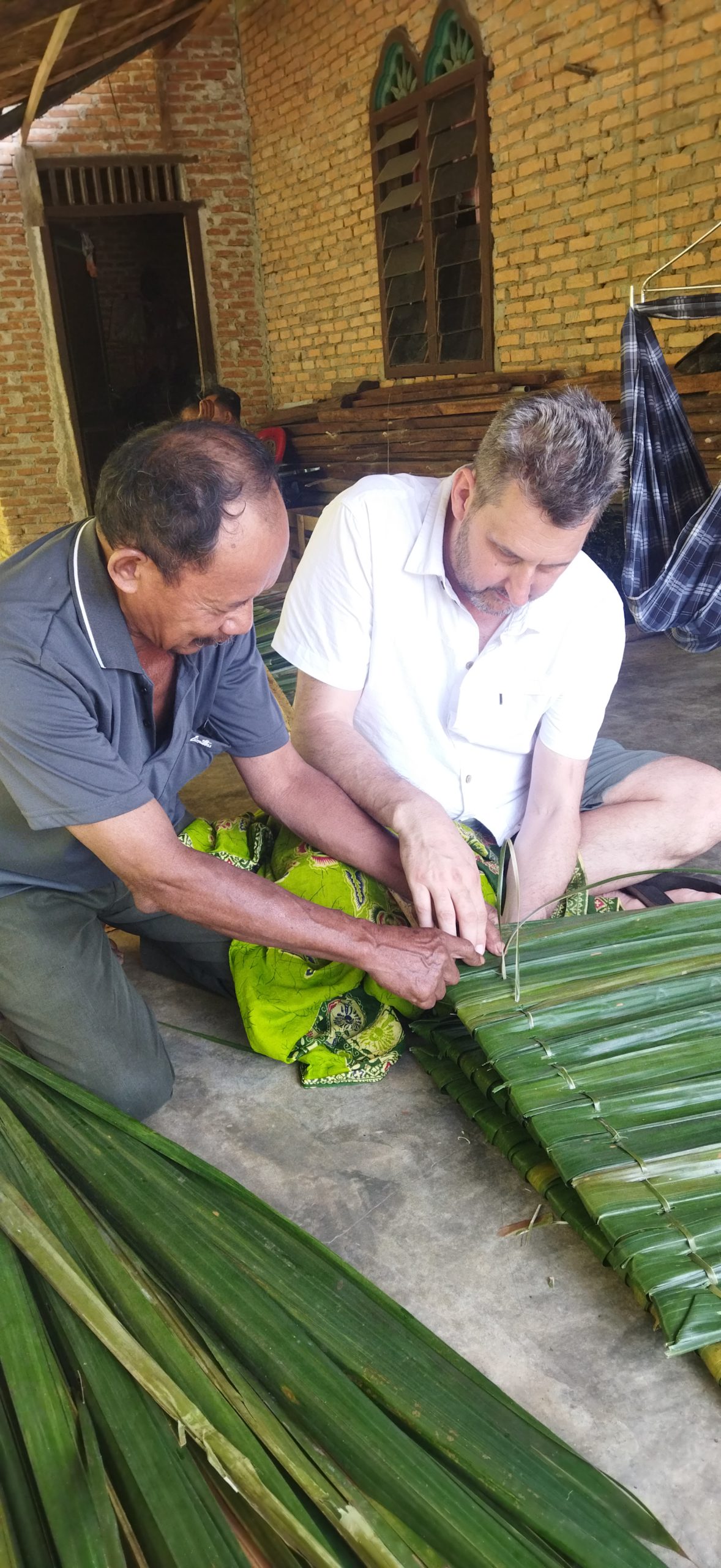 Treffen mit einem Dorfbewohner, der Atap (traditionelle Blätterdächer) herstellt – setz dich dazu und probiere es selbst aus